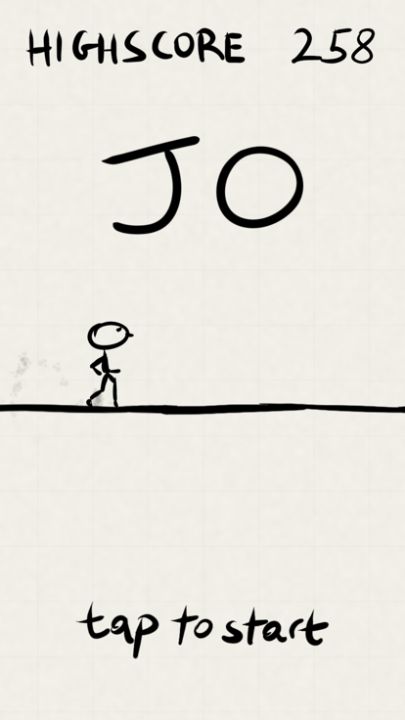 Jo is a very simple tap-to-play game where you control a running stick figure. Your aim is not to crash into anything. That's it. Score as high as you can, and return to beat your highscore.