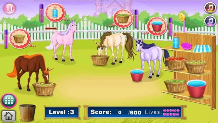游戏的目的是帮助Karen照顾独角兽并使他们开心。 在这个游戏中有六个关怀等级。 每个级别都有一个目标分数,您必须在可用的时限内达到该目标分数才能进入下一个级别。 打扮你的独角兽,与其他独角兽赛跑。