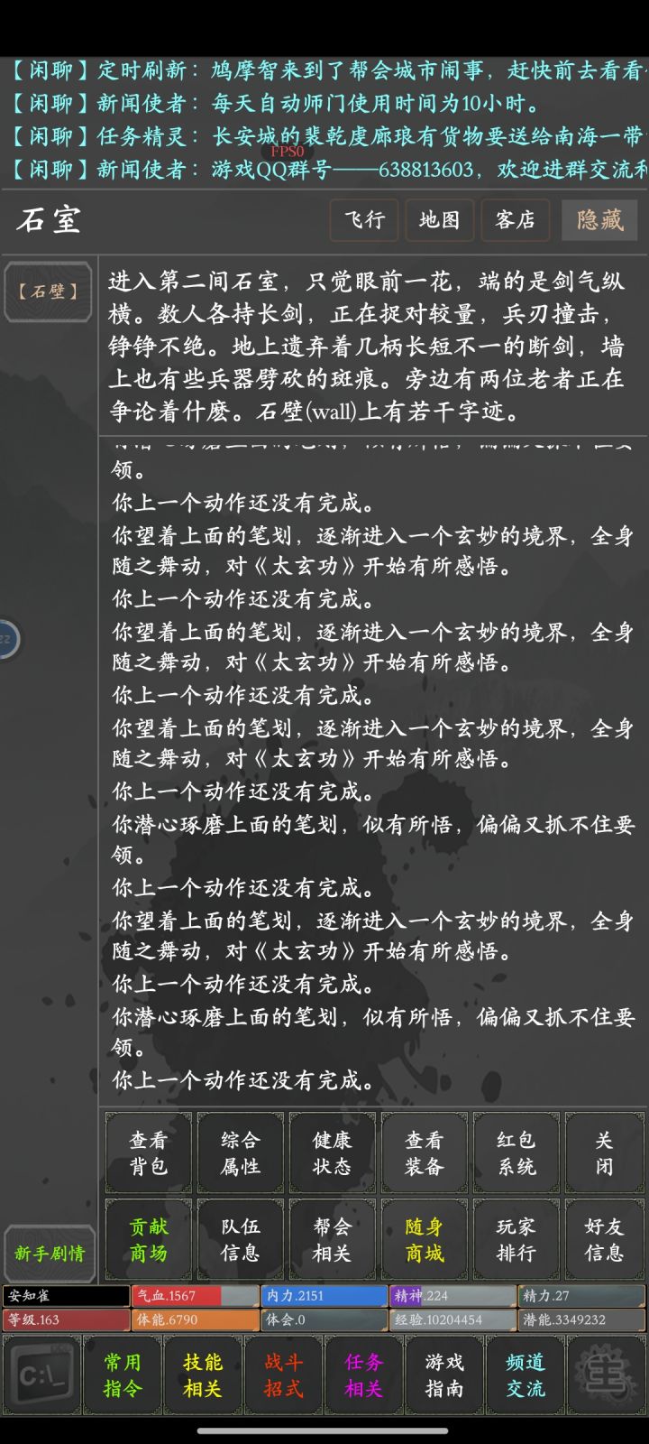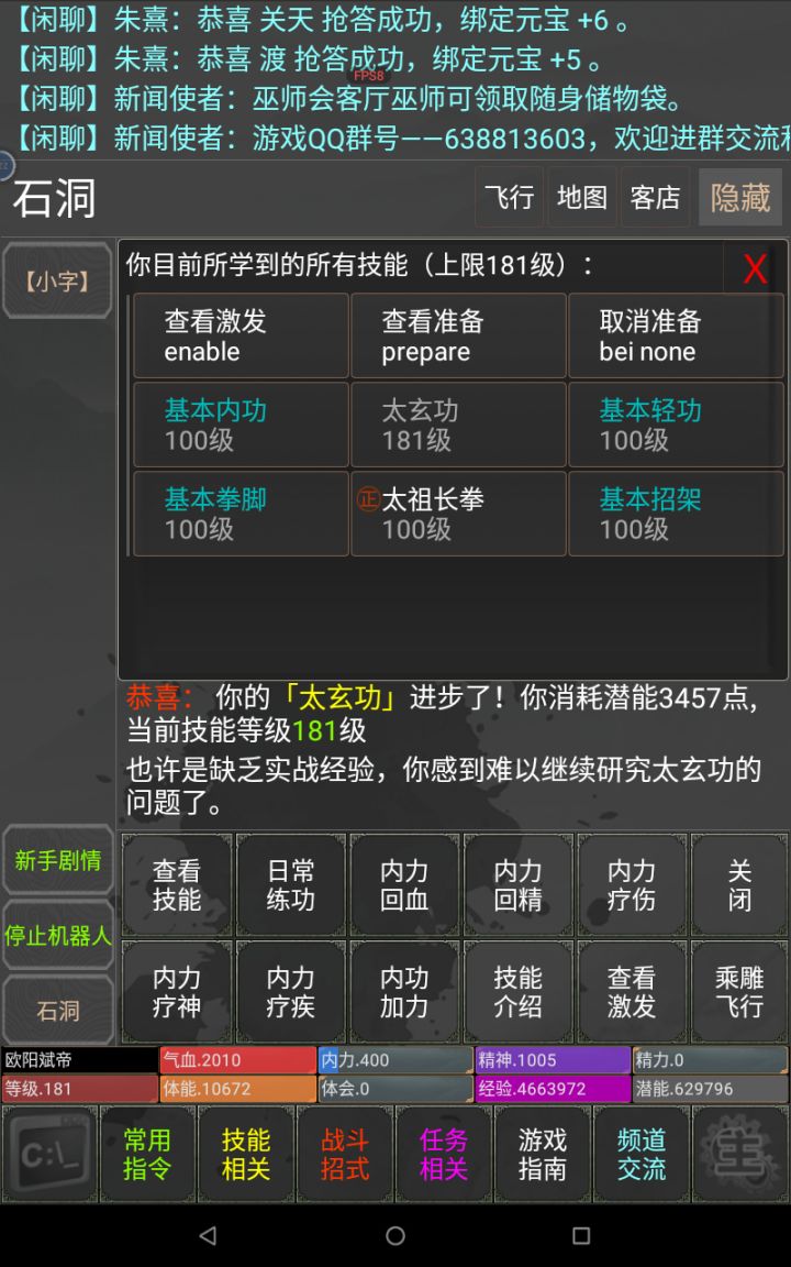 新手第一天,挂了个太玄181级,爽。真心推荐这个游戏,武功多