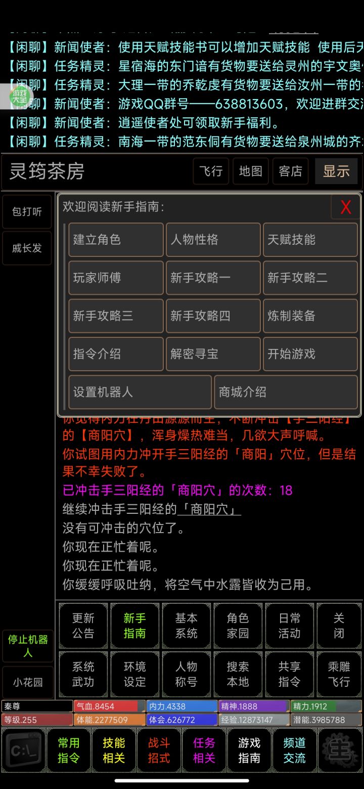参考前人的略改一下,开局洗点-指定分配属性点20 20 20 20,性格随意,转生随意,天赋自动默认鸿运当头。新手剧情(界面左下角查看)1:常用指令-健康状态2:捡起野果,背包打开,吃下;捡起葫芦,再点葫芦,点盛溪水,饮用(其实用的是背包里的葫芦)3,4:省略,需要注意有时候做任务有时长的,注意用户名的位置,不是卡了5:到门口敲门,进长廊,点丫鬟-葫芦6:到正厅,点游鲲翼(庄主)-葫芦后面都简单明