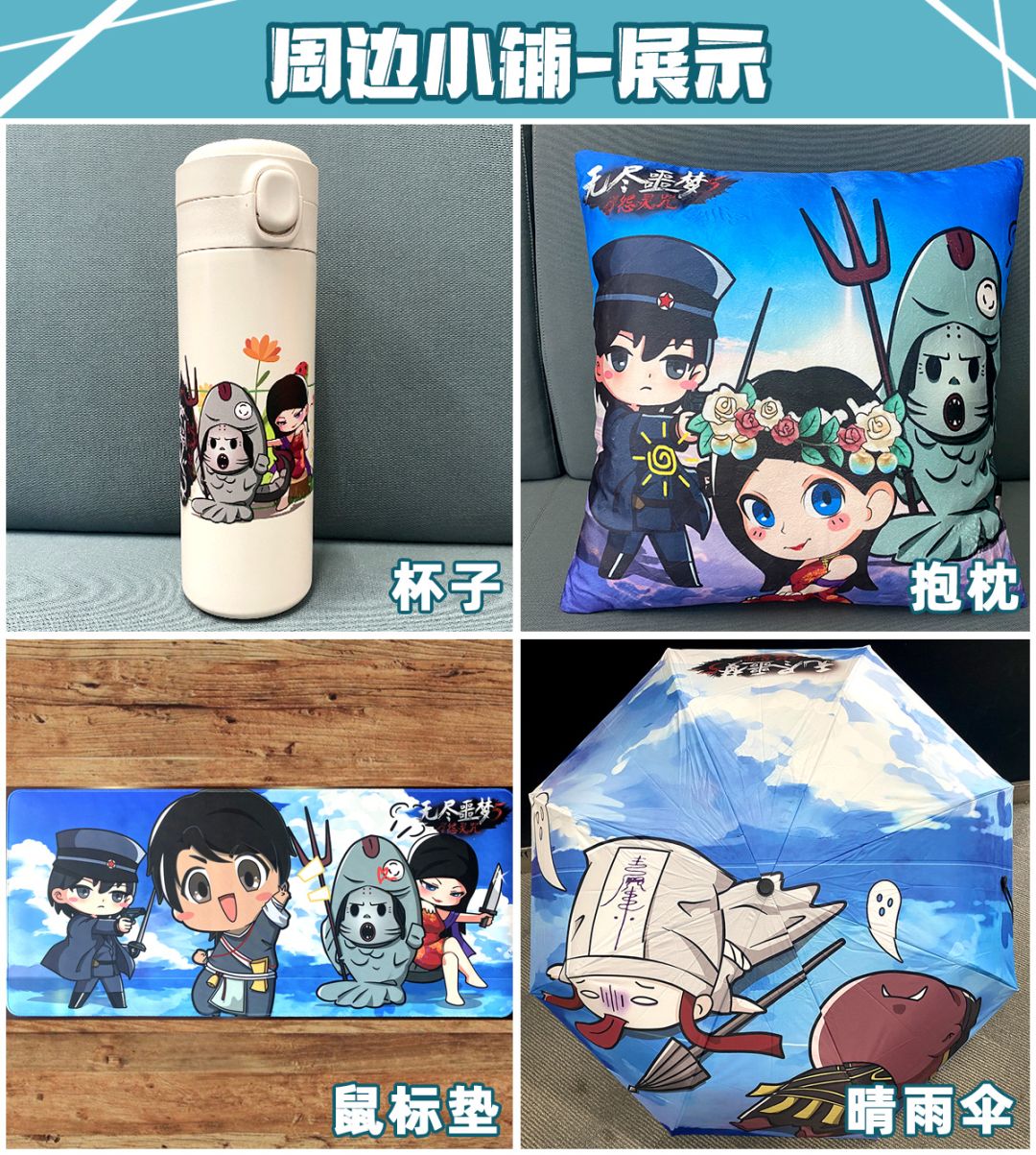 又到周末啦!非常高兴的告诉大家,无尽噩梦周边小铺开张啦~!*★,°*:.☆( ̄▽ ̄)/$:*.°★* 。大家可以在小铺里买到无尽噩梦定制周边,有保温杯、晴雨伞、抱枕和鼠标垫,欢迎大家来选购呀~!数量有限,先到先得!(更多详情可以咨询客服娘) 下周就是《无尽噩梦5怨灵咒》周年庆,我们非常感谢大家一年以来对游戏的支持,也为大家准备了惊喜,大家敬请期待~!