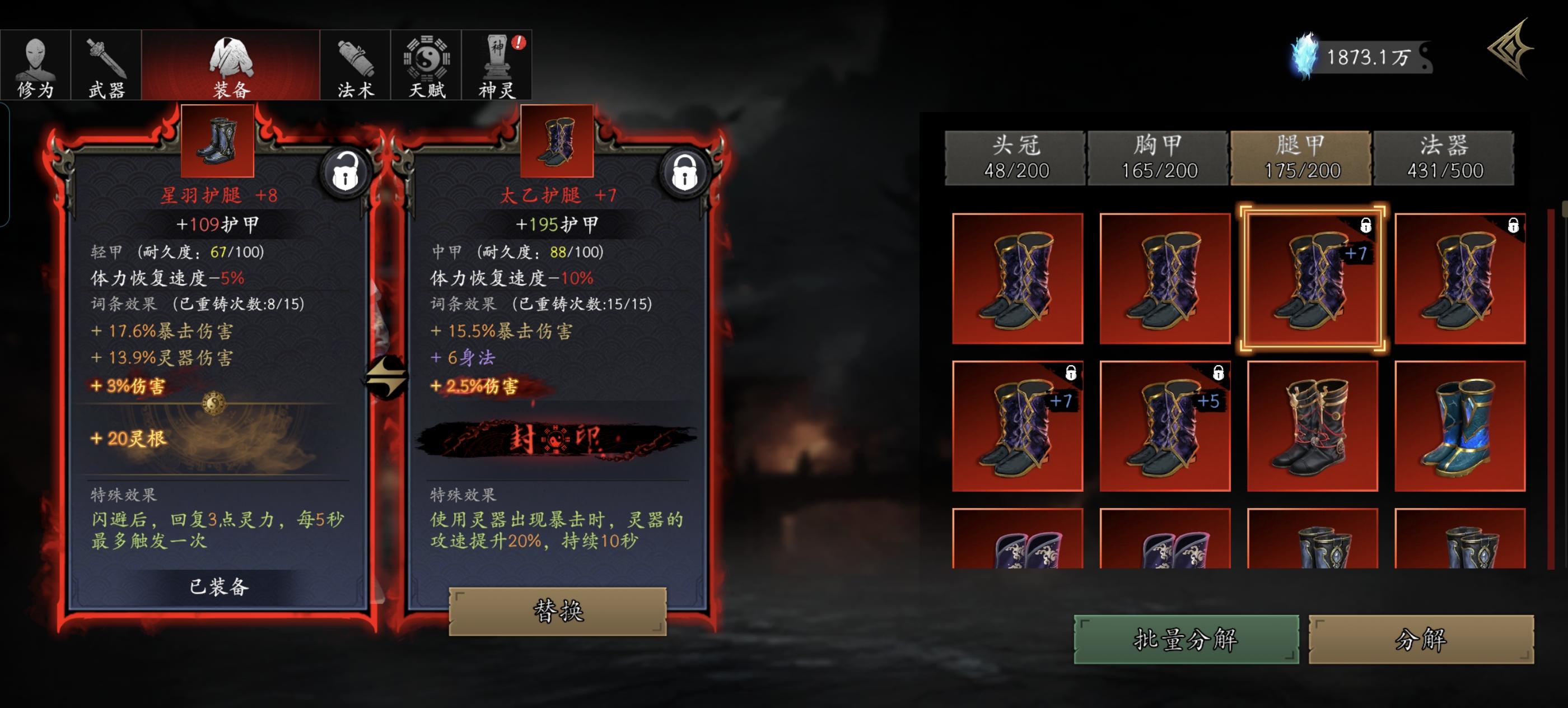 这个护腿的暴击加速,对龙腾蓄力状态生效?那个性欲护腿加的那点回复灵力聊胜于无根本用不上啊。