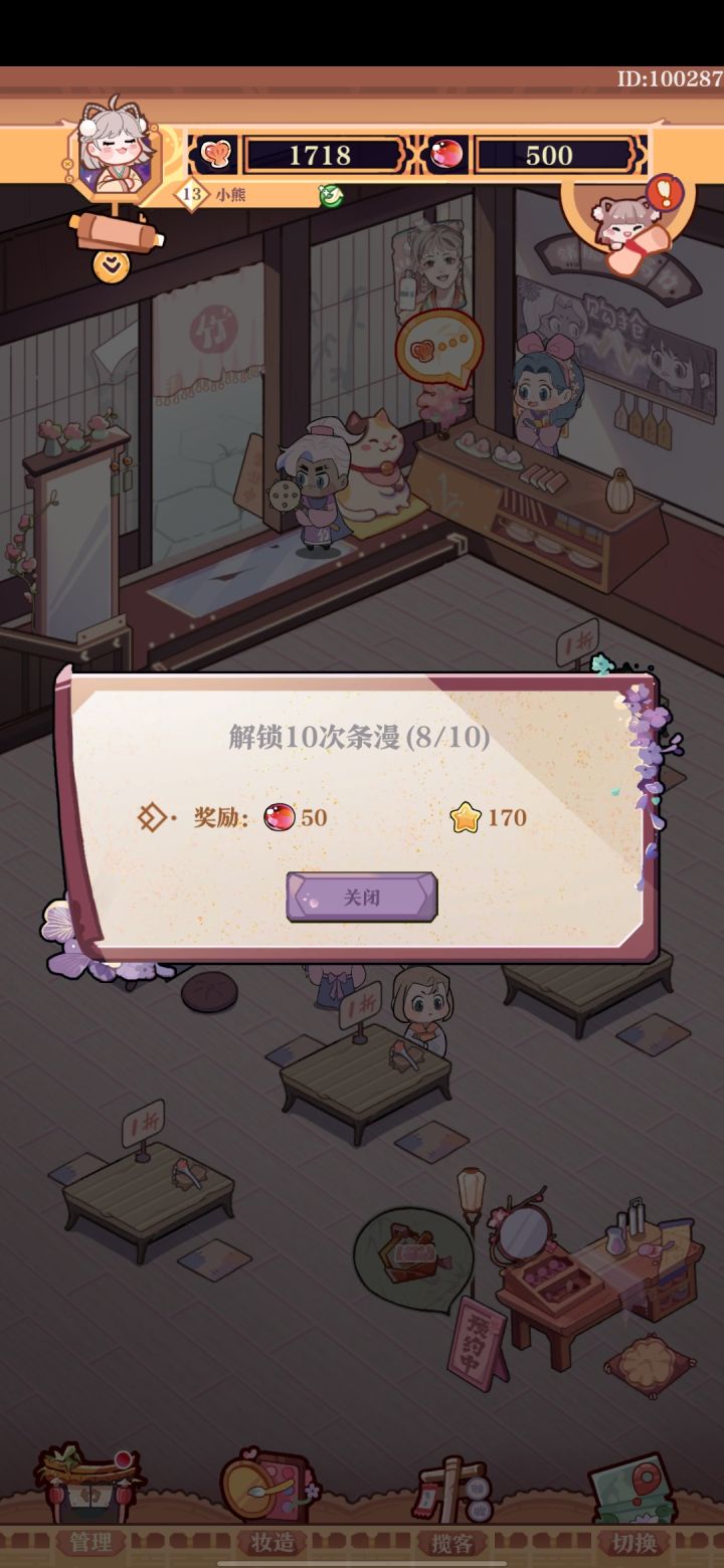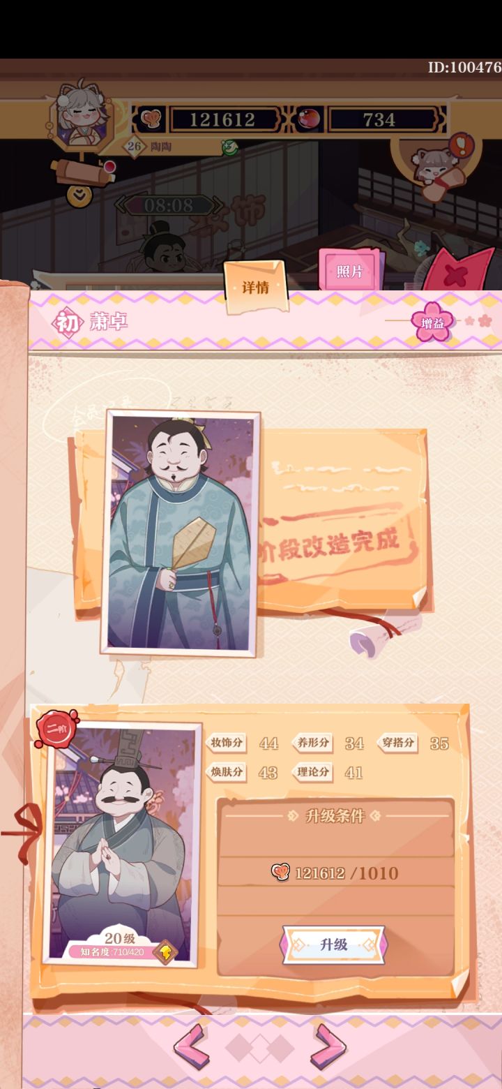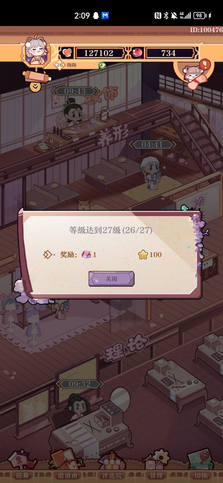 游戏第二天,卡26级,而且没办法升的状态总结来说,升家具可以增加储钱罐收益(也就是挂机收益)买商品可以增加客官购物进账(就是客户付的钱)(但离线挂机的时候如果何小元在睡觉的话可能就没有这部分收入,所以给何小元升级还是比较有必要)而且有个问题,会员萧卓的一二段立绘好像放错了(O∆O)