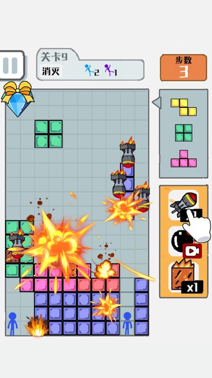 在这里你可以使用各种强力、有趣的武器进行战斗,以防止从天而降的砖块干掉你!