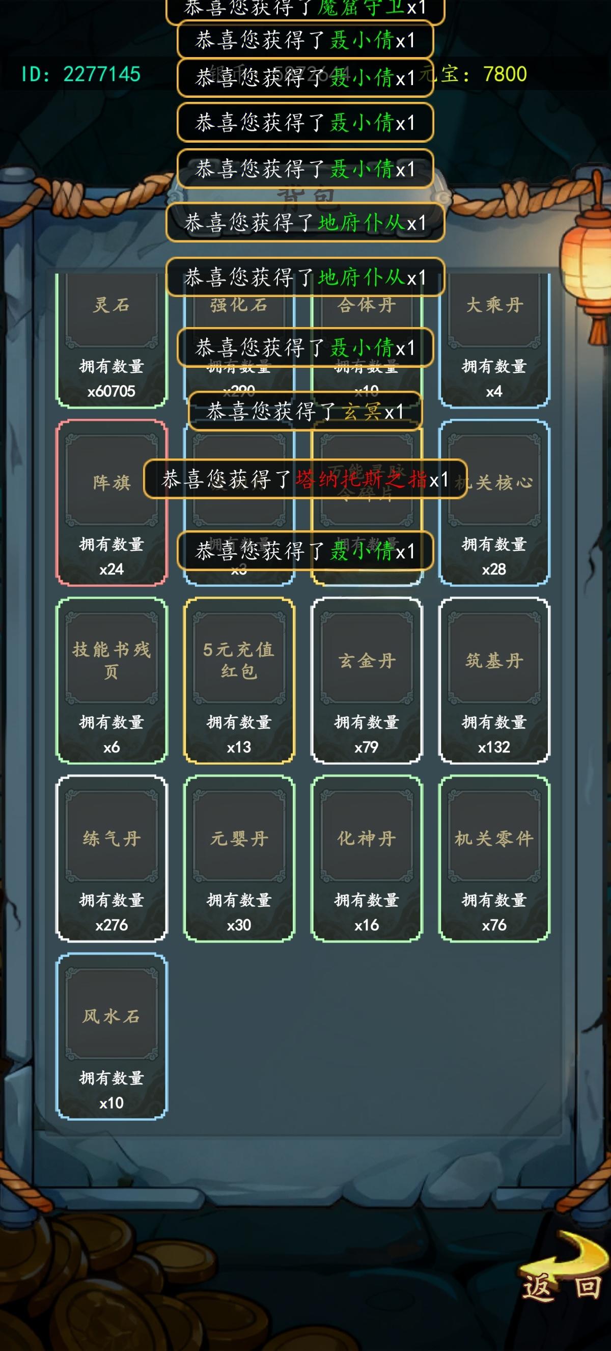 写的掉落玄金丹往上,结果一背包都是练气丹,搞笑吧。
