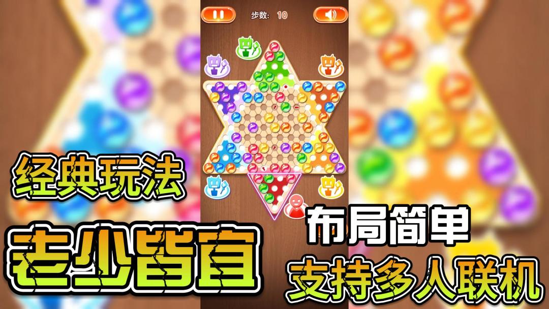 经典跳棋,老少皆宜的玩法,简单且轻松,轨迹路线帮你更好获得胜利