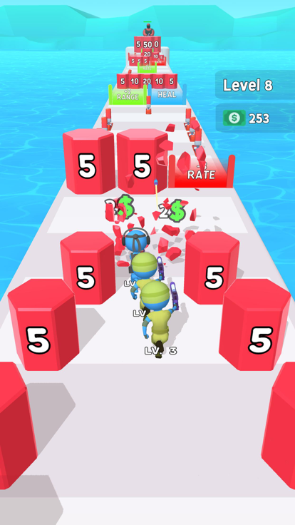 Merge - Run - Shoot! Merge & Run is an idle auto clicker with also popular runner elements in it!