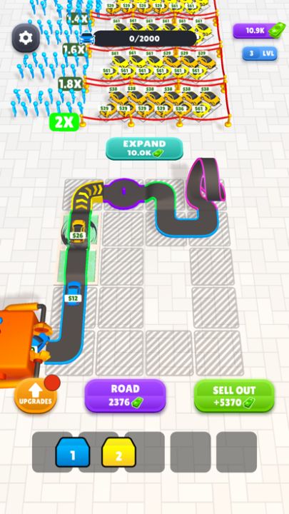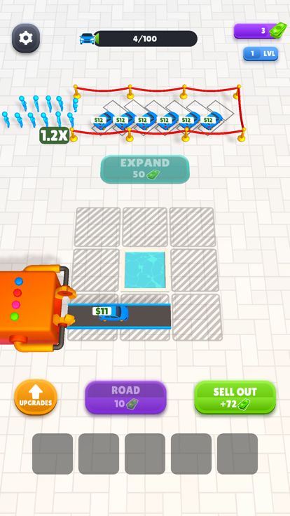 Buy roads and merge them to have different featured ones. Upgrade to earn faster.