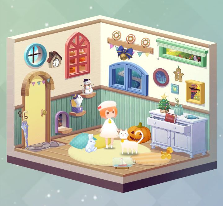 说一说谜题吧。整体不算难,而且有一些小巧思,要注意一些细节。毕竟画面只有手机屏幕这么大,谜题都是蛮显眼的,尤其是前两关。从第三关开始进入花园之后就有一点点难了,我记得那个数脚印的泥板,谁能想到脚趾头也有四个和五个之分hhhhh这是一个小细节;还有十字架中间的三个数字谜题,实在没办法,找了攻略看。第四关在海边那一关也挺难的,给三只老鼠喂食物的时候,我一直以为打x是因为老鼠不愿意吃,结果一直在那里排列组合三种食物;还有海豚海报12345个圈圈,试了两三遍发现什么都没有;那个方向盘,主要就是要把箭头正向北,这里又是一个小细节。第五关就是一个室内,其他都还可以,就是那个摆四个花瓶那里出五个数字密码,我摆好之后一直没有意识到密码要看影子,直到我看了攻略😳。第六关最难的我感觉就是看那个地图,要得到五个字母。说实话,也是看了广告得到答案。谁能想到他那个箭头没什么用呢?主要是看数字。我还在那个地图上一直找左边右边的箭头,以为他们是连在一起的😂。通关之后会有赠品游戏,也很可爱。依次能够得到蓝蝴蝶结铃铛、姜饼人、小黄狗车、瓶中船、惊吓盒子和一个钟表,看着他们慢慢填满小女孩儿的屋子,就也觉得蛮幸福的。