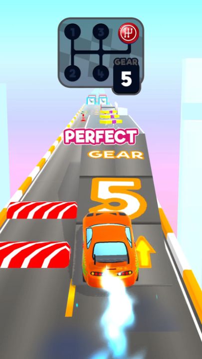 Drive and collect the money on the road, avoid obstacles and pass through the gates in order to change your gear! Adjust your gear according to the number on the ramps!