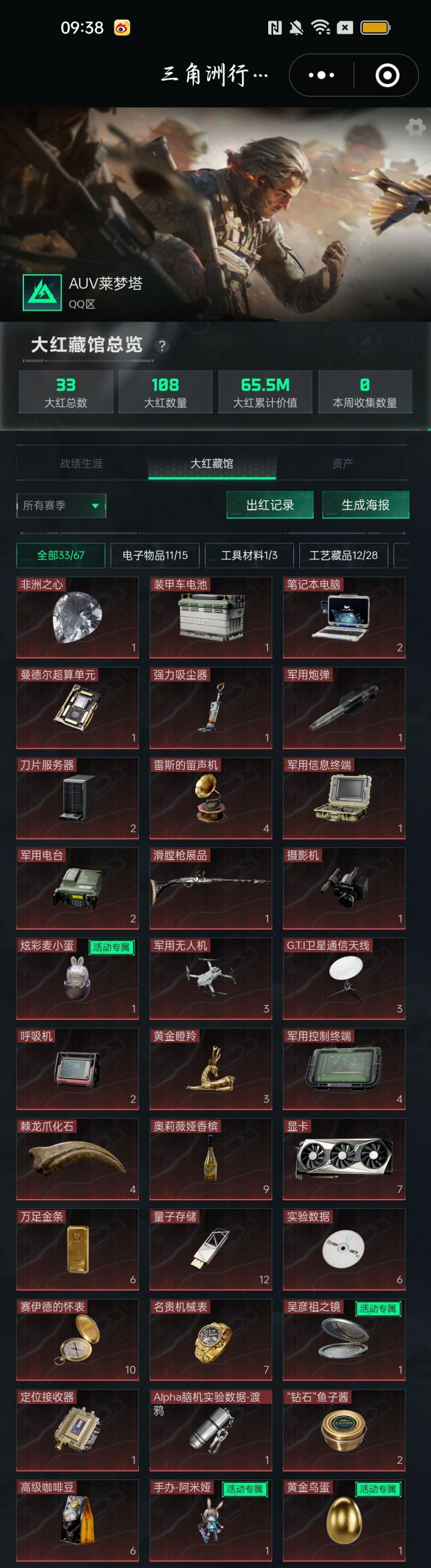 到了s5赛季我就熟悉了很多,或许是我冲了手册/战令,又或许是我赶上了藏宝月的历史机遇,又或许在线时长多了80m,到100,到120,蹭蹭蹭资产上涨速度和做火箭一样。到s6之前大约就200m左右稀里糊涂的,【卡战备和跑刀,就是容易被踹,机密也打不过啊,补充一下s4赚的钱一半买了8张(和爆的2张加起来)东楼经理室虽然一个大红也没出过,但是我不服气s5赛季加仓累计18张(s5也爆了2张,这可能是首领卡老顾客福利)当然终于出了6格的云存储阵列,其他大红没有,说到打不过就跑刀就经济学就在长工好好玩耍了,我也开始向33发起挑战,狙击精英的时候在长工磨炼了耐心和打狙,33的金抢客还是找nb的人做的】