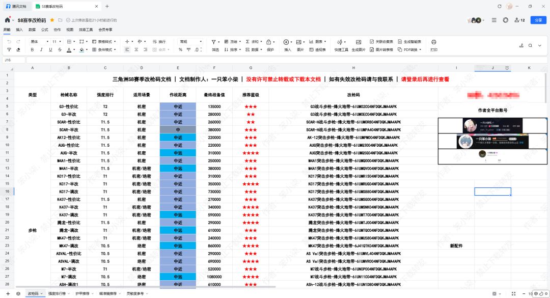 KC17提交:KC17突击步枪-烽火地带-6HJ6HAO09CDRQA7OLUPBA KC17「30W实战」:KC17突击步枪-烽火地带-6HJ6JF009CDRQA7OLUPBA KC17满改:KC17突击步枪-烽火地带-6HJ6JT009CDRQA7OLUPBA AKM提交:AKM突击步枪-烽火地带-6HJ7KR409CDRQA7OLUPBA AKM「30W实战」:AKM突击步枪-烽火地带-6