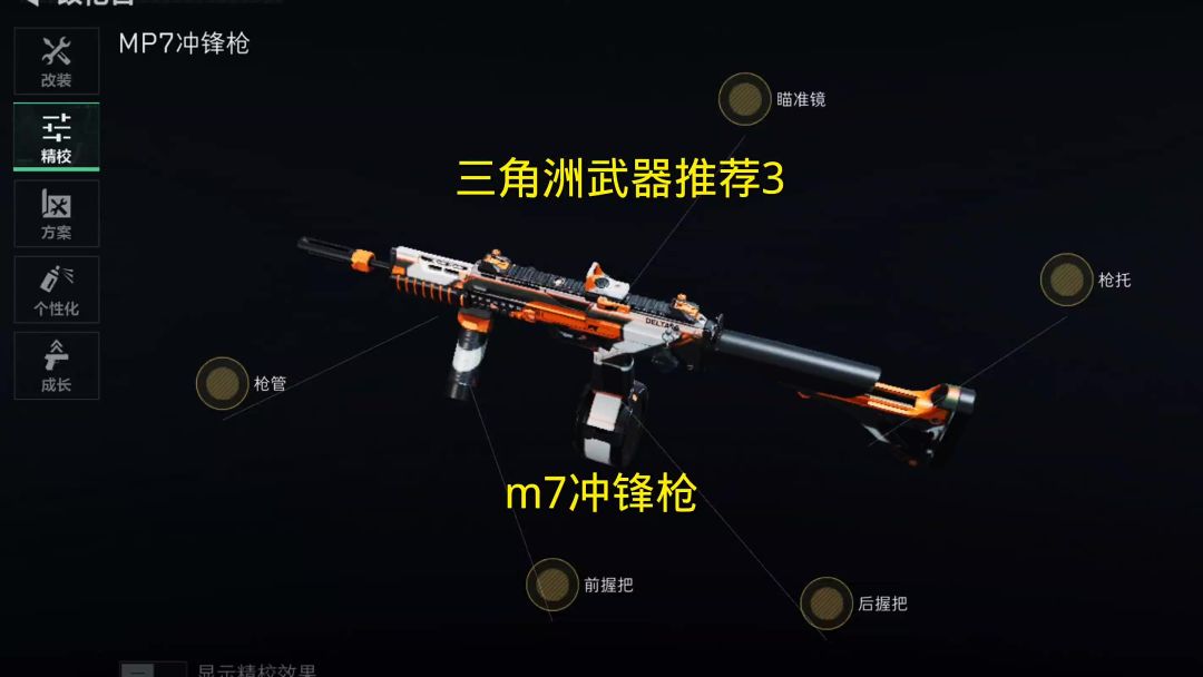 Hello,各位三角洲的干员大家好!三角洲行动全面战场模式,由于地图大并且地形复杂,然后地形复杂,那么有没有一把枪,既可以满足我们对近战游记的渴望,也可以满足子弹的担忧呢?有的有的,就是我们今天这把改装版MP7冲锋枪,结合职业可以免除弹药之忧,而且近战对决敌人是秒融化的! 【改装MP7冲锋枪基础介绍】 外观方面: 这把MP7冲锋枪设计紧凑,线条硬朗流畅。枪身主体为黑色,显得沉稳且具有科技感。顶