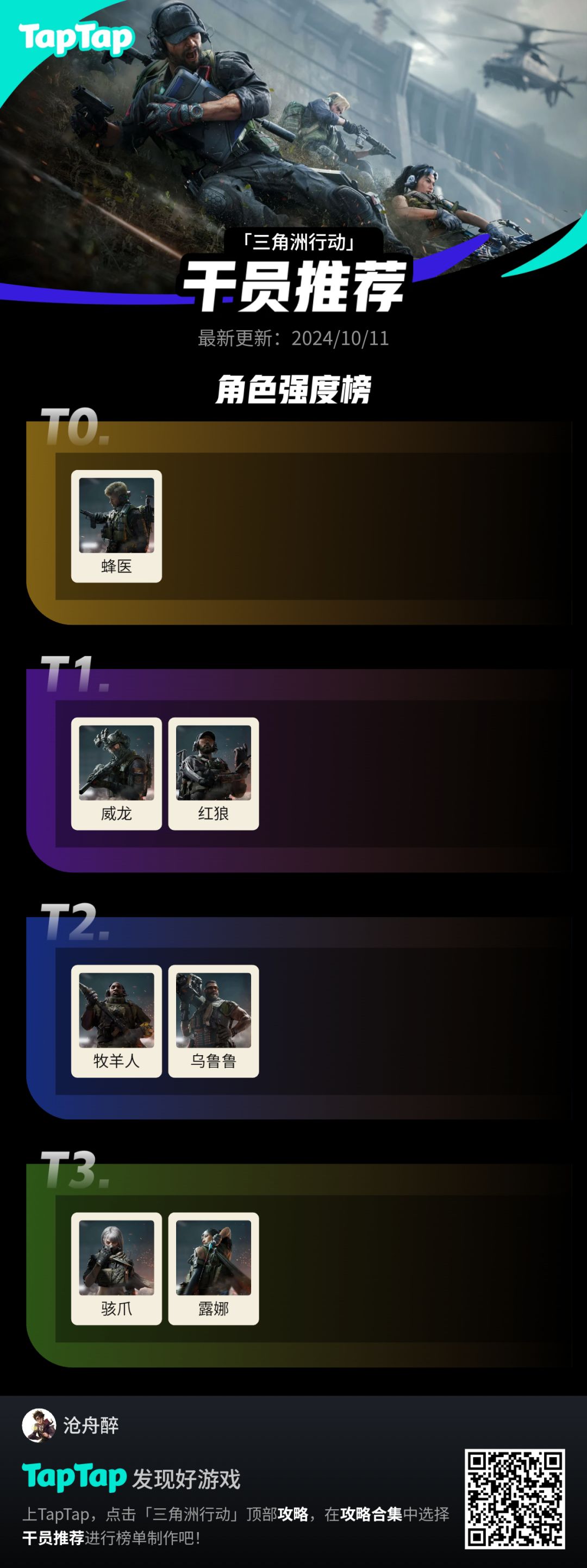 #三角洲行动干员推荐 #浅评一下 蜂医:技能上手简单,机制强,可以带的枪以冲锋枪为主,光是T0级别的枪就有好几把,比如p90,mp5,勇士,短剑等 红狼/威龙:技能需要搭配一定的操作,枪械方面稍弱一点蜂医和工程 工程,:技能较弱,但是能带的枪强。步枪M7的含金量不多说 侦查位:技能强度一般,能带的枪以狙击为主。这游戏狙击枪有多好用玩过的都懂。而冲锋枪只有两把,还是最弱的两把冲锋枪。