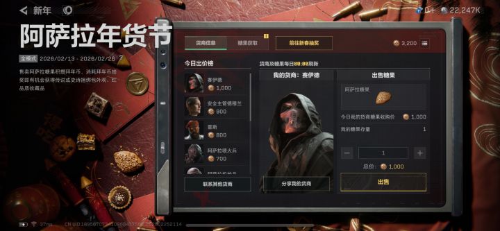 老赛兑换码 三角洲行动【KXGLTR88】我今天的货商【赛伊德】出价【1,000】拜年币,复制口令来一起发财!-02月25日