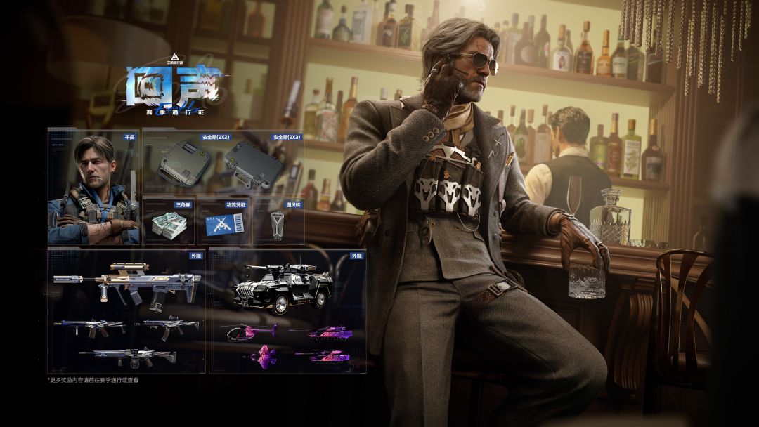 全新回声赛季通行证,4月16日正式上线! 参与对局提升等级,即可领取回声赛季通行证奖励。 回声赛季通行证内含【全新侦察型干员-回响】(免费线获取)、【银翼-未结卷宗】、【AUG突击步枪-西装暴徒】、【轮式突击炮-纸醉金迷】、【安全箱】(可免费获取2*2,或付费解锁2*3,当前赛季可持续使用),还有多款武器外观、载具外观、战备补给等你获取!
