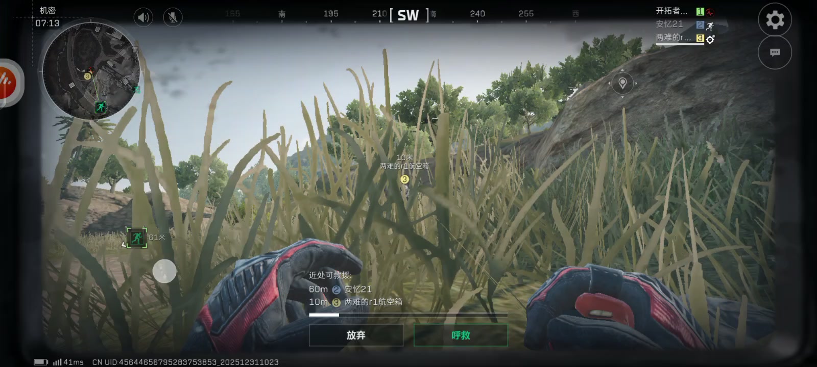第一次是跟人对枪死了后他过来舔包不救,就蹲在边上看着。第二次被自己手炮炸倒,马上爬到撤离点了结果他给我扶起来往反方向走