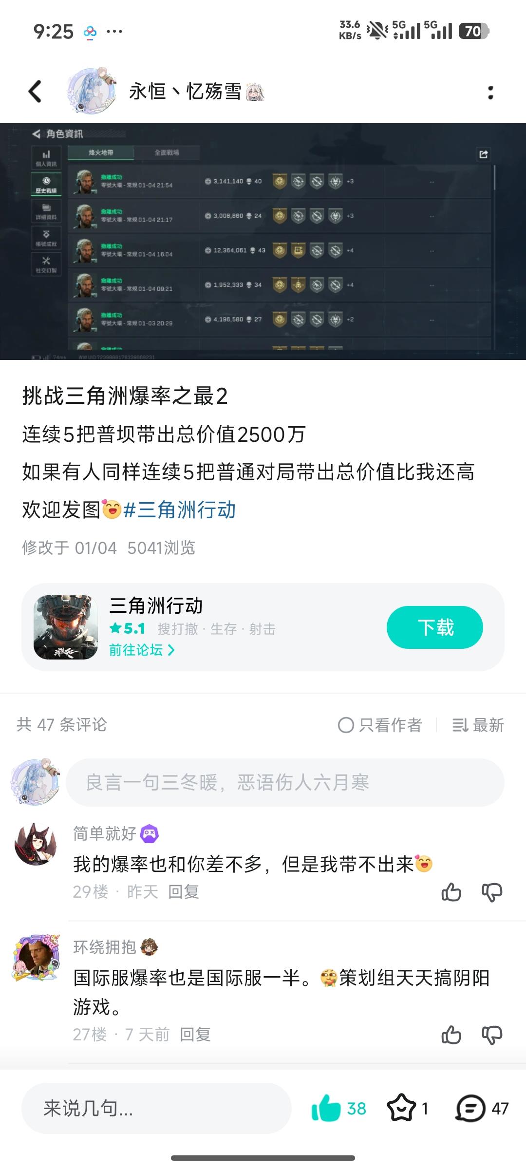 可以看一下我之前发的“挑战三角洲爆率之最2”爆率佐证:我电动马达摸出来10个还有人质疑我寻宝鼠,我开物资透我玩啥普坝啊,去机密绝密不更好吗,先说一下我现在赚损比是8.5M#三角洲行动 #非洲之心 #普坝爆率