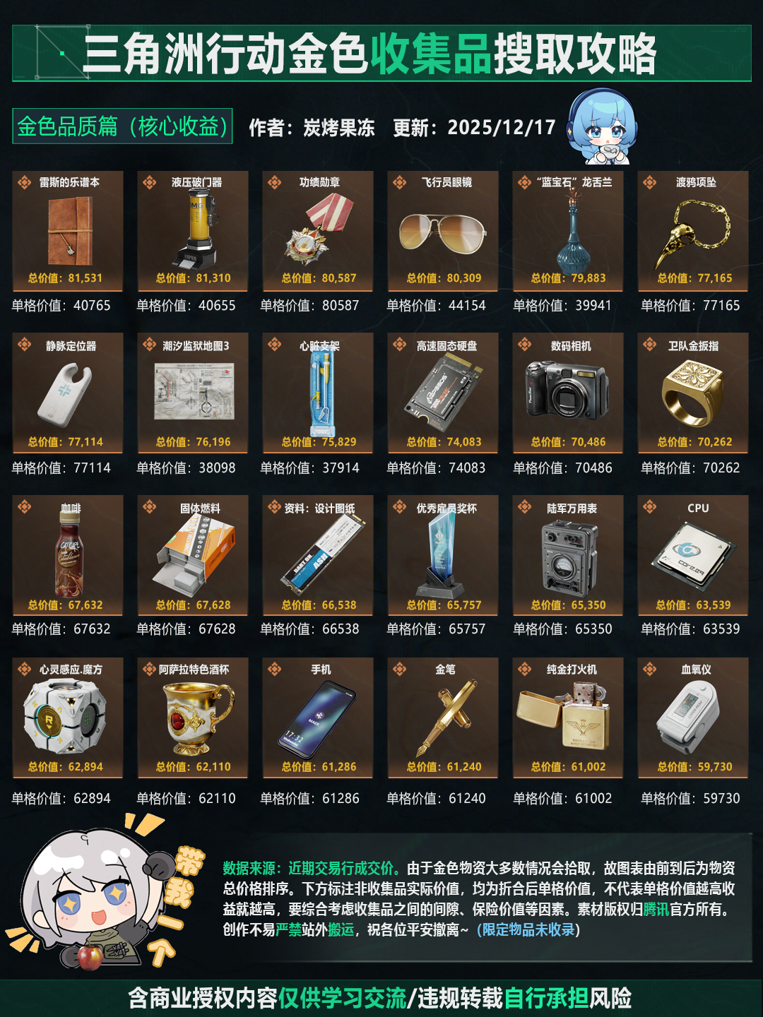 三角洲行动金色物资价值榜