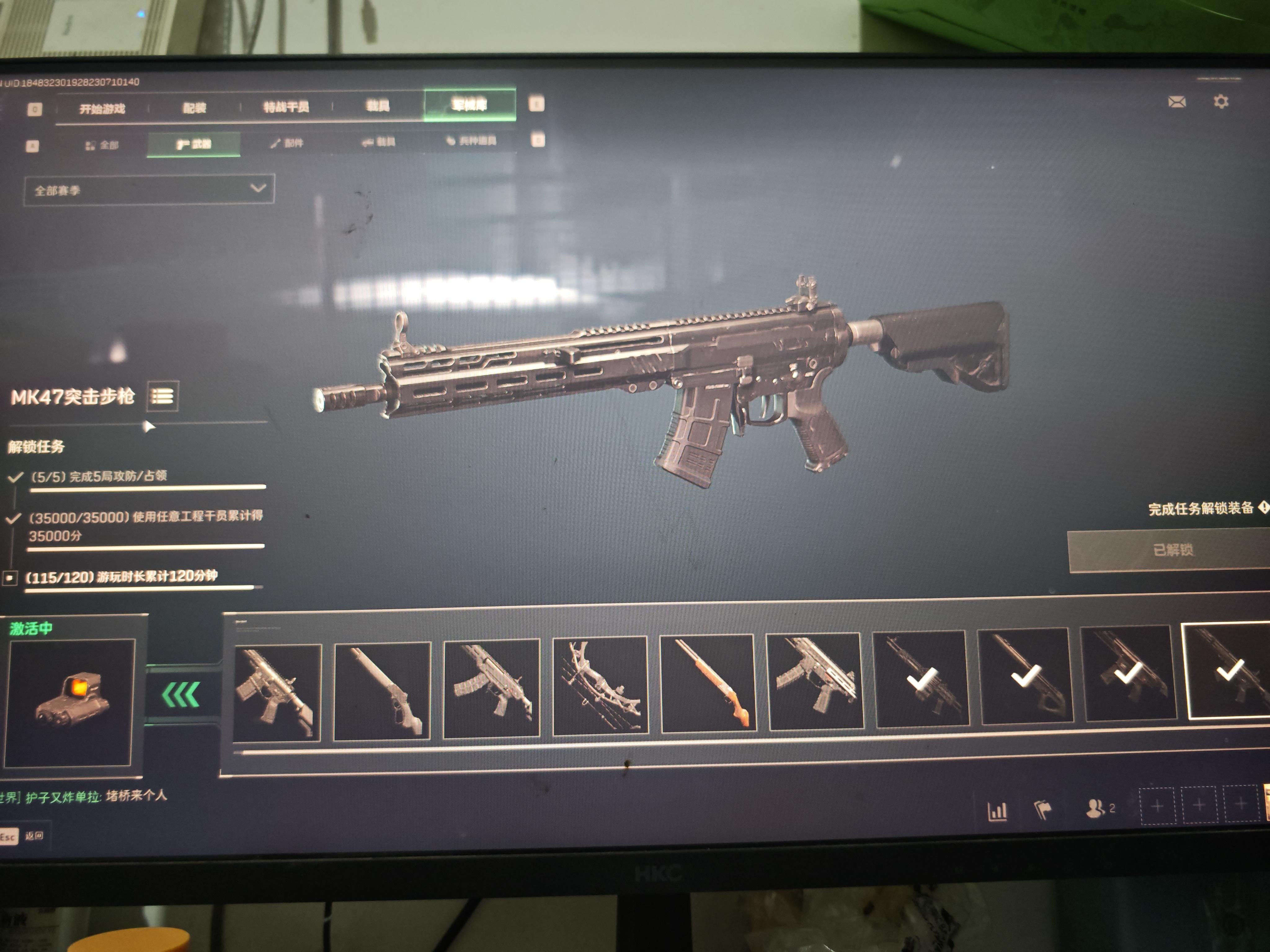 军械库解锁任务没做完呢,显示已获得,我也有这个枪的皮肤,但是背包里就是找不到这把枪