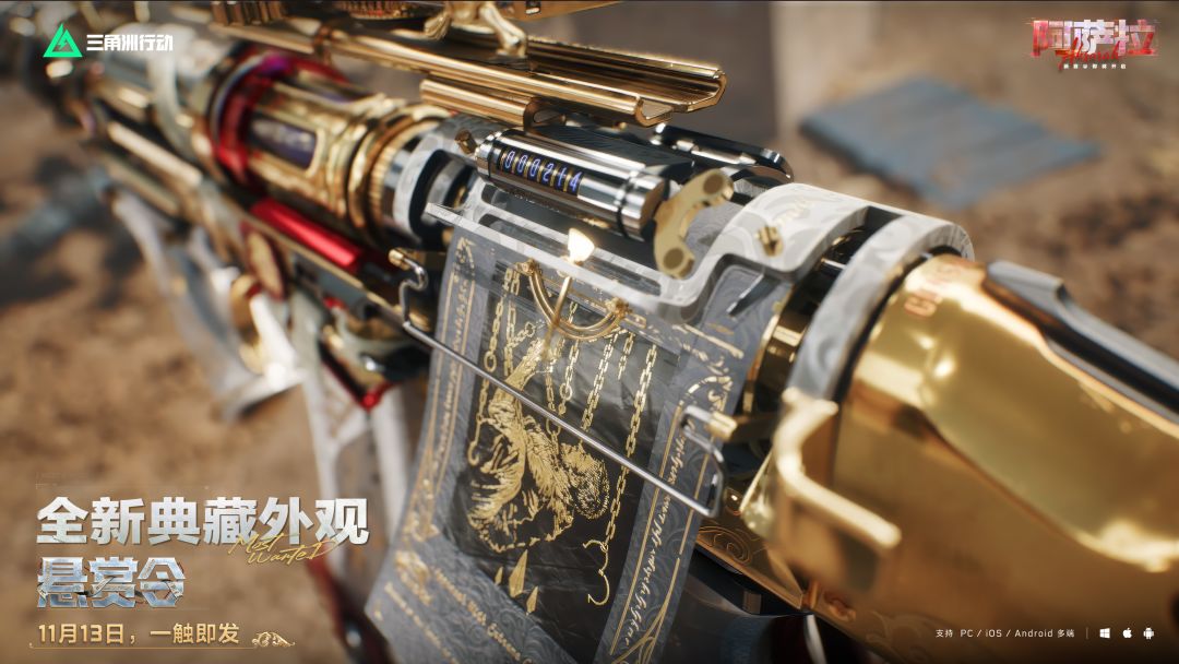 全新主题典藏外观【悬赏令】,11月13日正式上线! 【悬赏令】典藏外观包含悬赏令-AS Val突击步枪,融入独特的悬赏令检视元素,并配备多套检视动作。使用武器击败不同数量的干员时,检视图案也会有不同的变化,帅气十足!
