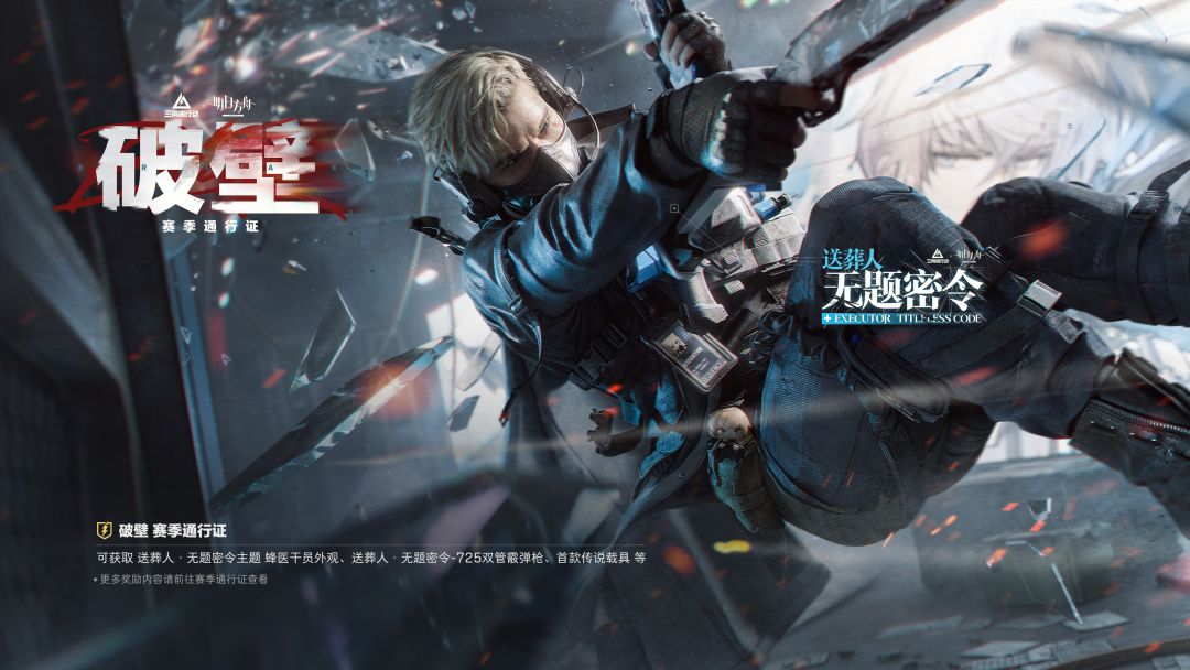 破壁赛季全新赛季通行证,7月3日正式上线! 参与对局提升等级,即可领取破壁赛季通行证奖励。破壁赛季通行证内含【全新突击干员-疾风】、【蜂医x送葬人·无题密令联动传说外观】、【送葬人·无题密令-725双管散弹枪】、【传说载具外观-丛林猎手-GTQ-35轻型坦克】、【安全箱】(可免费获取2*2,或付费解锁2*3,当前赛季可持续使用),更有海量武器、载具外观以及战备等你获取!