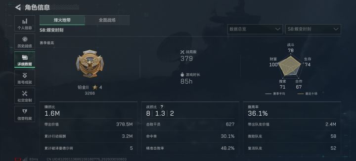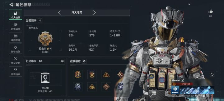 开局打印室上面,我直接冲打印室里面,看有没有火箭燃料,没有,跑出来,趴楼梯下面。20分钟吃东西,吃完牢区,14分钟打算飞升撤,赛季任务需要完成三次标杆,一出门,我和威龙四目相对,威龙和我同时停住脚步,威龙拿枪,我蹦蹦跳跳,然后把东西都脱了,威龙看了一下,应该是被恶心到了,给我丢了个小金。他队友无名和莉娜也来了,无名看了一下,也被恶心到了,MP7,SMG45,都是我摸的裸枪,二弹标准制式券的勇士