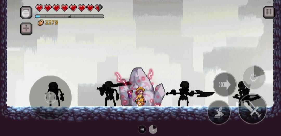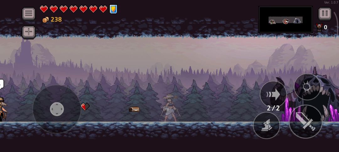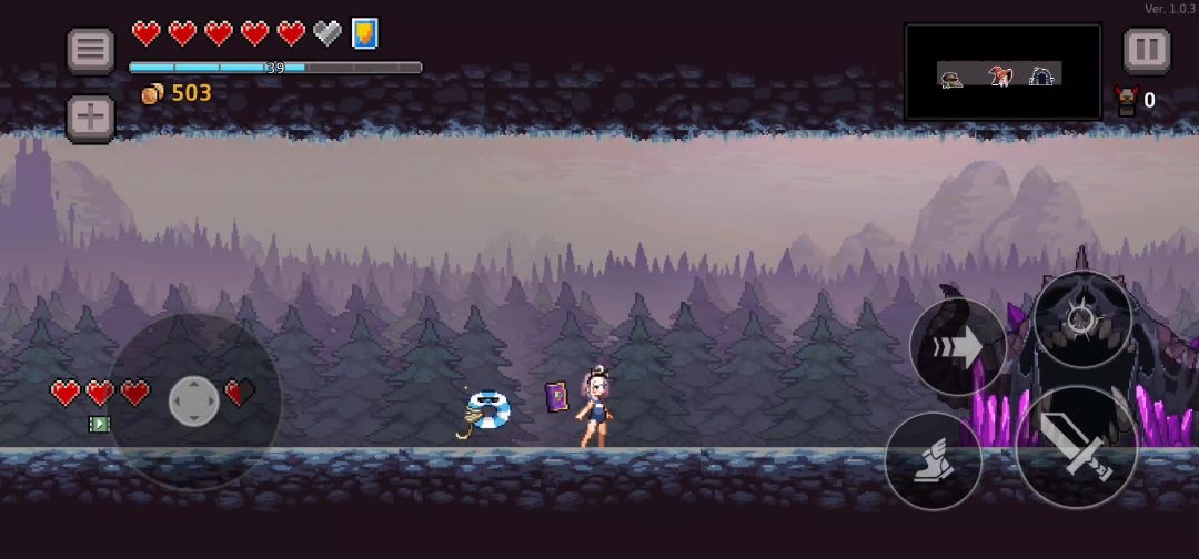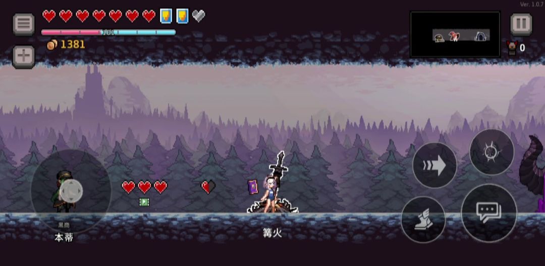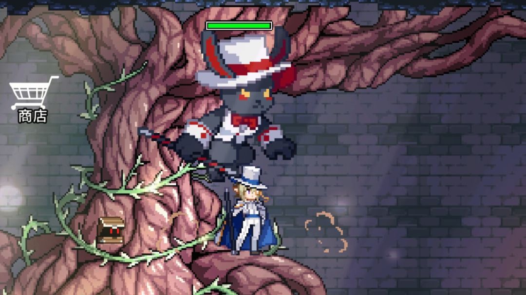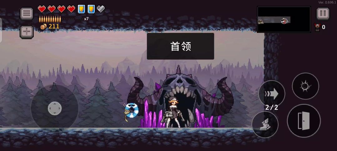 第一关boss大眼怪:5个技能:召唤小眼怪(1350血前4只一次,每波两次,之后换技能。1350血之后5只一次,其余与1350血之前一致),音波(大眼周围出现红圈后并闪烁两下释放紫色音波),中场弹幕(在中场时召唤圆圈形弹幕,然后向四周散开。可闪,可躲至弹幕中央),左向右冲刺(1350血时释放,占两格,可以闪和二段跳躲避,仅一次),左右激光(562血时释放,占四格,能闪,也可以朝它袭来方向跑至空白地