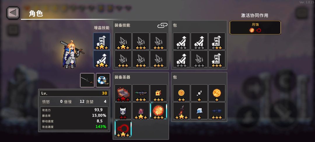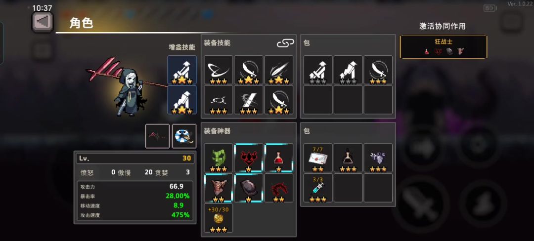 蛮爽的,但是完全靠圣器堆强度 永生灵药加伤,金币加伤,嗜血契约者触发杀戮者低状态增益,召唤卷轴双次释放技能,破碎日志III IV V加技能数,并触发羁绊解除技能减伤减益 堕落王室徽章替召唤卷轴,黑光瓶替永生灵药,破碎日志II替III IV V任意之一凑羁绊 未知手杖小怪房带,BOSS房换金币 我一般带常带烈焰剑保命,记得带魔法包囊加圣器栏位