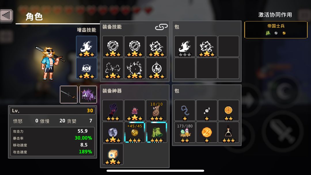 核心是召唤物死亡直接复活的圣物+无人机,蓝色技能伤害,涂毒,神龙,剑术随意选择,圣物不推荐羽毛(和复活召唤物的那个有个组合,会降低召唤物数量)。 缺点:伤害很刮痧 优点:刮的很快#我的游戏日记Vol.1