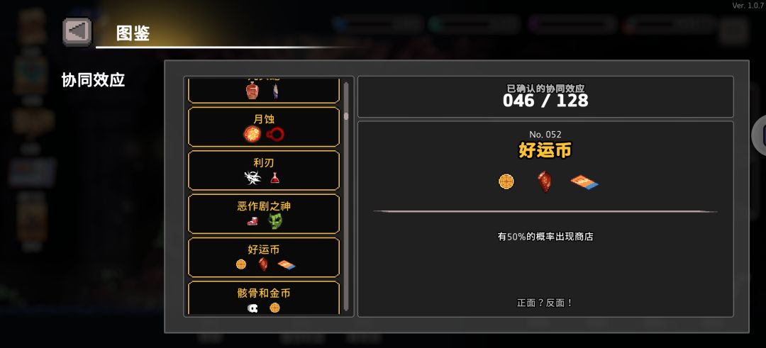 如题:除非大家号不解锁全圣器和全技能,不然ban位肯定不够。在优先ban了技能和2星以上圣器的状况下,ban位是一定无法覆盖到一星圣器的…那么人物要带的宠物只能选择箱子增加自己的幸运值,即使如此操作过8其实核心还是很看脸的…在玩了无数把后发现一个装备速成的协同非常友好,如下图“好运币”这个协同在商店和过图小包厢的掉率非常之高…而好运币同时能最大可能的控制大家进入商店的时机,从而最大的利用复活蛋和商