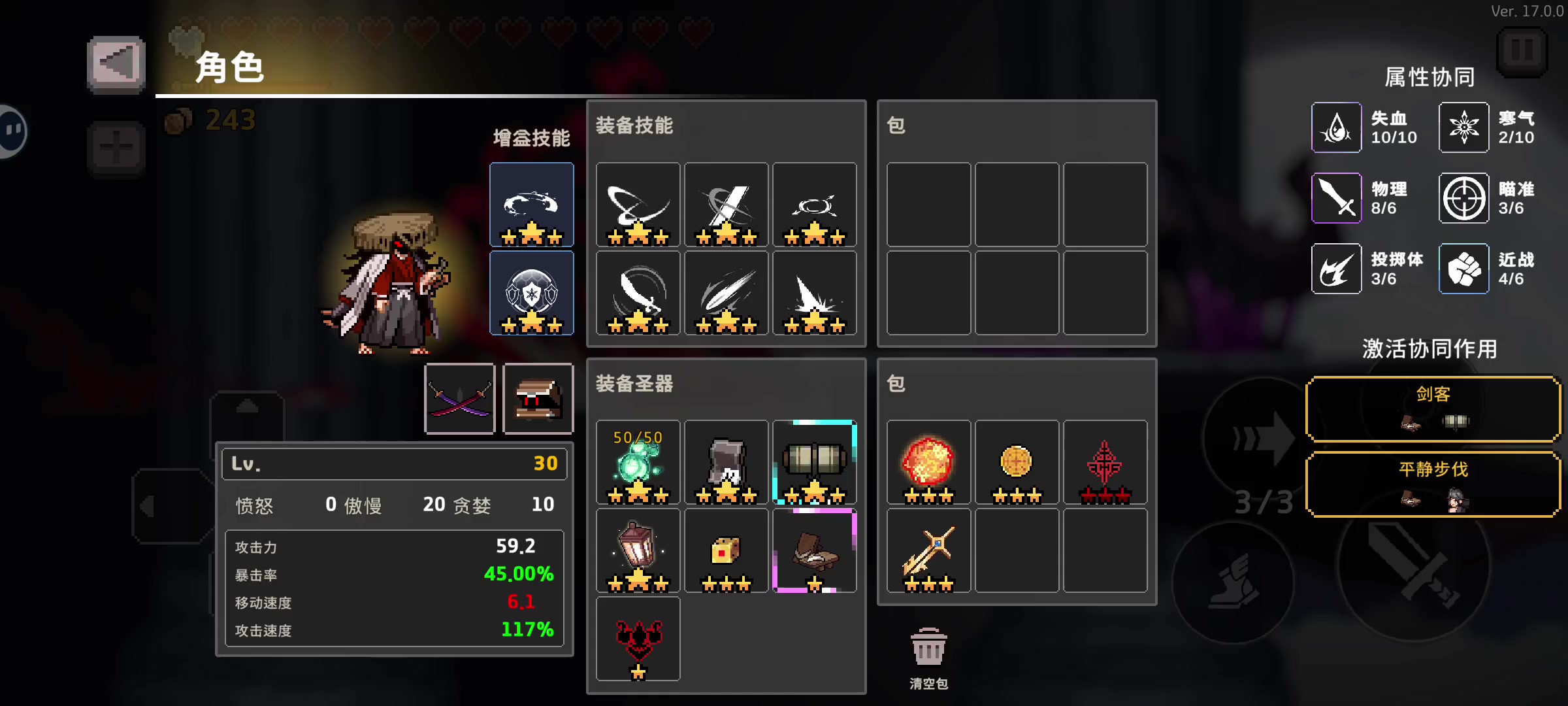 因为近期疾风骑士入坑的萌新比较多,所以才有了做这期攻略的打算,帮助萌新更快度过开荒期,请注意,很多萌新刚上手,接触到的第一把武器是奥伯龙其实正确的带法是携带塔文图斯,可以帮助我们省下一个圣器格子,多带一个加攻击的圣器提高伤害先上ban位图:因为是萌新向攻略,所以没有开特别难获取的圣器,接下来给各位详细解答圣器的作用:首先需注意,如果玩失血流派,请一定有先解锁化石,化石的增伤叠加是无上限,很