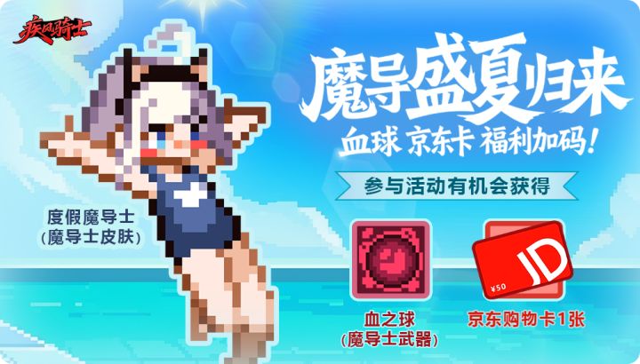 本次活动,魔导士度假皮肤与血之球武器限时返场,更有京东购物卡福利加码,属于你的魔法夏日,可别错过啦!