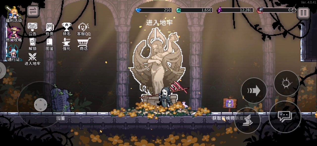 虽然这个游戏的画风是像素风,但是他的特效很好,比我一开始想象的画风要好的多,福利也不错,不用充值,里面的资源都是免费的基本上打过几关就可以玩到其他角色了,游戏皮肤也很好看,每个角色都有属于自己的特色,比如我现在玩的叫杀戮者的这个人物,我感觉在我解锁的人物中她的割草感是最强的,很爽,再比如说狼人这个角色,大招就是变狼人,不过变身后血量上限会变少,这一点要小心,变成狼人后在点大招是狼人咆哮,伤害可观;
