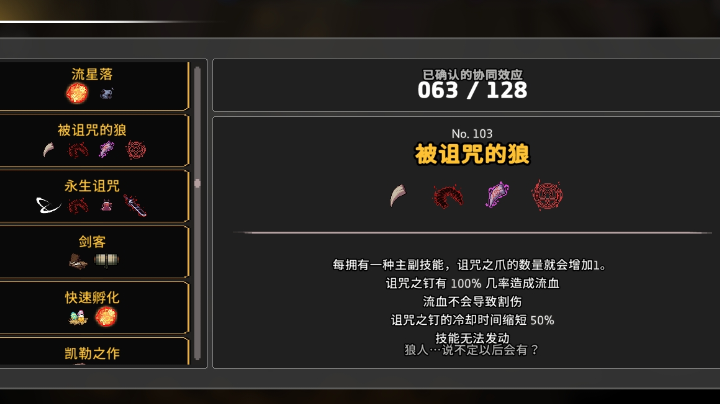 现在已经有狼人了[表情_微笑]有点拉,毕竟狼牙算是基础流的东西,主要是看这个协同效果所以试试玩失血[表情_流口水]词条有个冰冻,加上我操作不太好,所以没打过[表情_丑竟己](狼人分身机制挺有意思的,目前测出来好像是能额外触发一次荆棘铠和狼牙,不太确定,静待大佬开发)