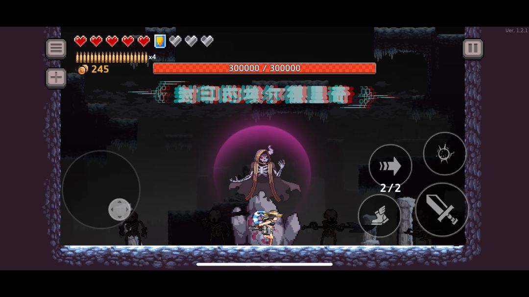 她会有个横向的技能,有两段注意躲避,然后她的最后一个阶段,看特效,打没有紫雾的,打过几次之后,她的全屏攻击就没了