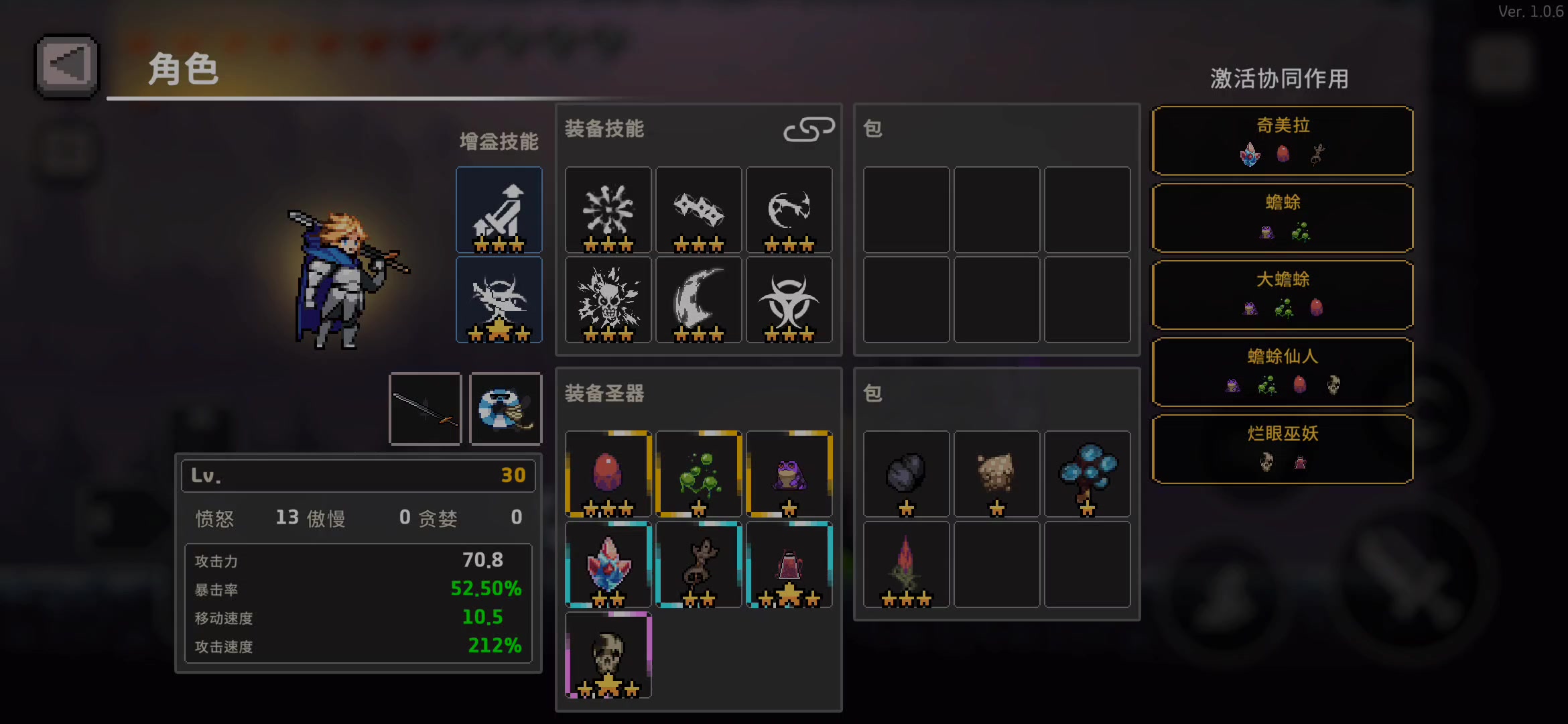 本人尝试过枪手配各种流派,都达不到满意的效果。原因在于枪手的天赋割裂,伤害乘区分散,导致目前的毒,召唤,冰箭等流派别的角色会比枪手表现的更好。但是正义之剑流派枪手比别的角色表现的好。并且这次我还没捡到魔法背包。 先说搭配: 正义之剑,冥想,过载。 圣物选择: 费伦图纹+小太阳,魔法棒,堕落王室徽章,尼夫海姆的象征,天神骰,金币,专属圣物。 核心在于枪手15级被动: 攻击时,以固有20%概率触发辅助