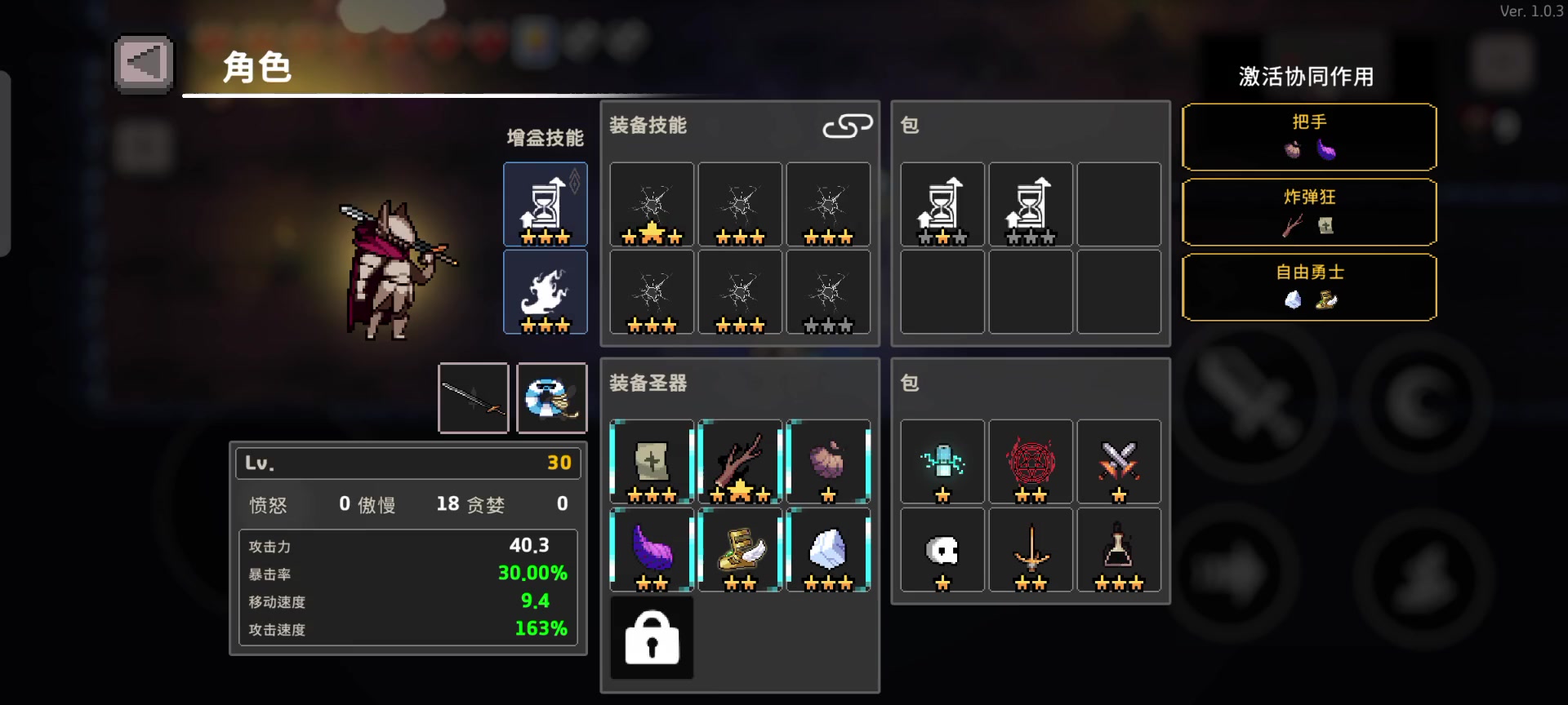 圣器配置 费伦图样 冰树枝 诅咒剑 狐狸面具 金币 魔法棒 金骰子 天赋3323 如果觉得前期难过渡,可以选择使用骑士,bd完全相同,前期会舒服一些