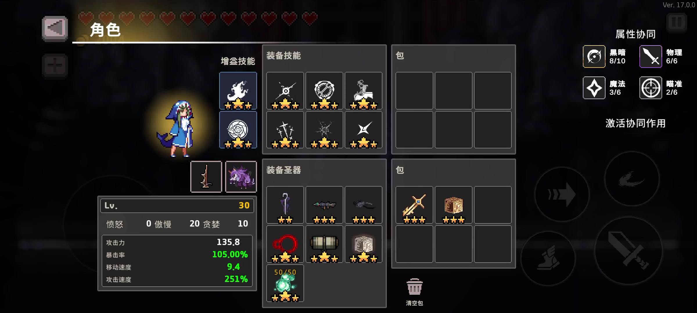 这篇只要是讲述铃铛如何解锁以及解锁的配置,先上配置图:可以看到骑士和龙人两名角色都触发了十神八黑协同,下面来讲述一下如何配置首先是圣器禁用方面,因为我们需要的协同量非常多,所以选择禁用掉所有我们不需要的圣器,金块则是保证我们的金币可以在商店购买足够多的物资首先是钢笔,钢笔可以增加我们探索过程中地图中出现的宝箱怪,也就是商店的数量,让我们可以在前期快速多次进入商店购买需要的圣器之后是这三件圣
