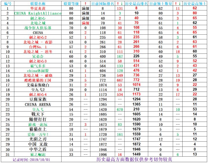【皇家起义2】国人联盟排名-2019.10.01