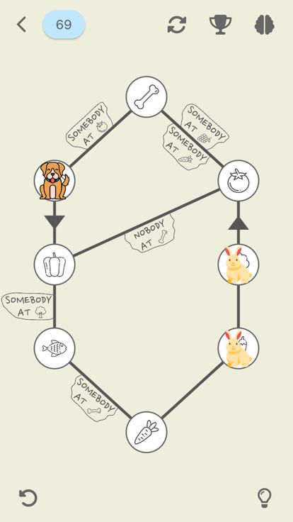 在节点之间移动,让狗到达骨头,让兔子到达胡萝卜。