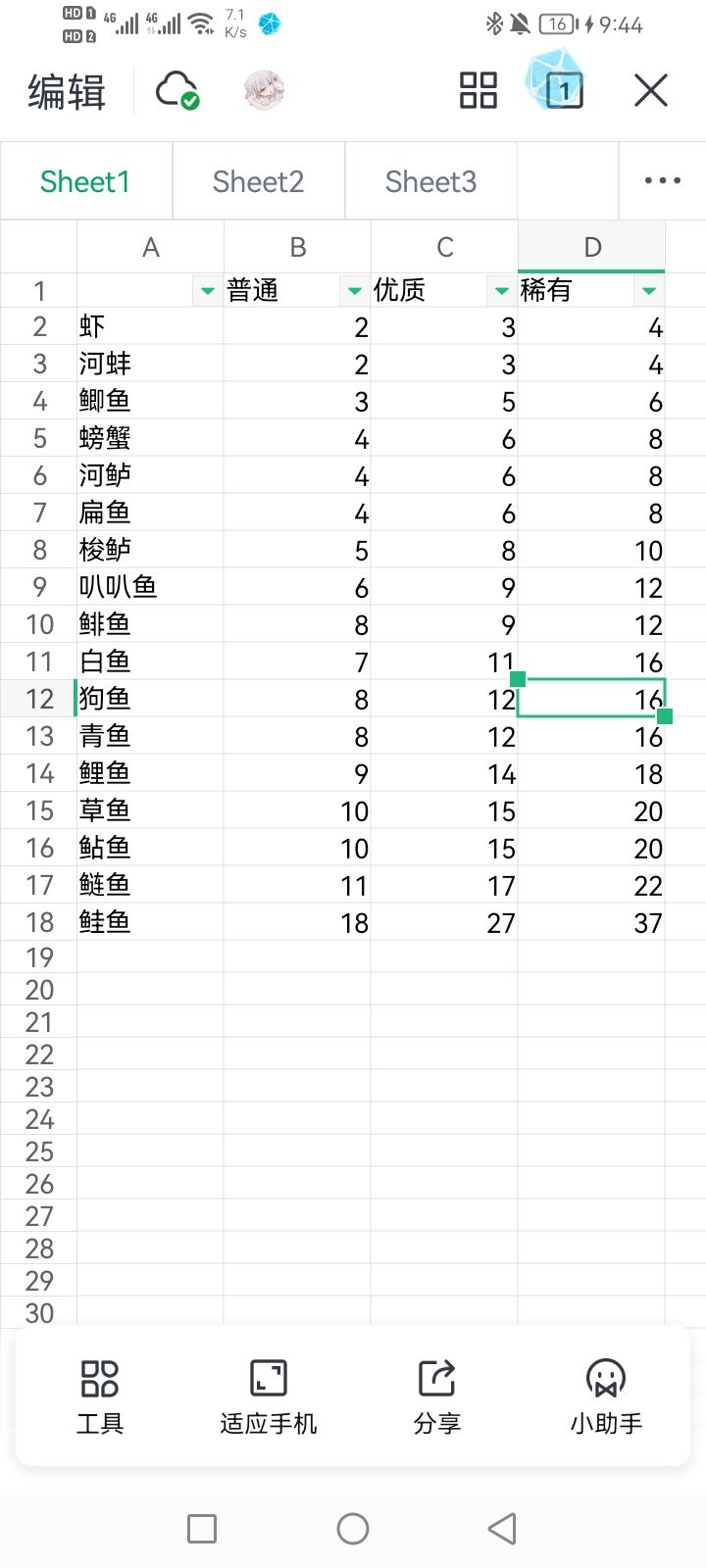 关于卖鱼:卖鱼可以获得金币,建议多上同类型,有概率被一次性买走,每种鱼价格不同,同类型鱼品质不同价格不同(图为已经钓到的鱼的价格,群友一起做的,欢迎补充和指出错误)