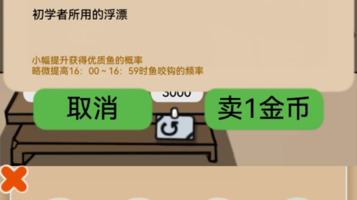 关于鱼饵:点击小木牌在杂货铺购买。鱼饵每天可以用金币购买30条,每条一金币,不够用可以看广告,一次30个鱼饵(上限30次),小木牌处一天送三次鱼饵,一次15条