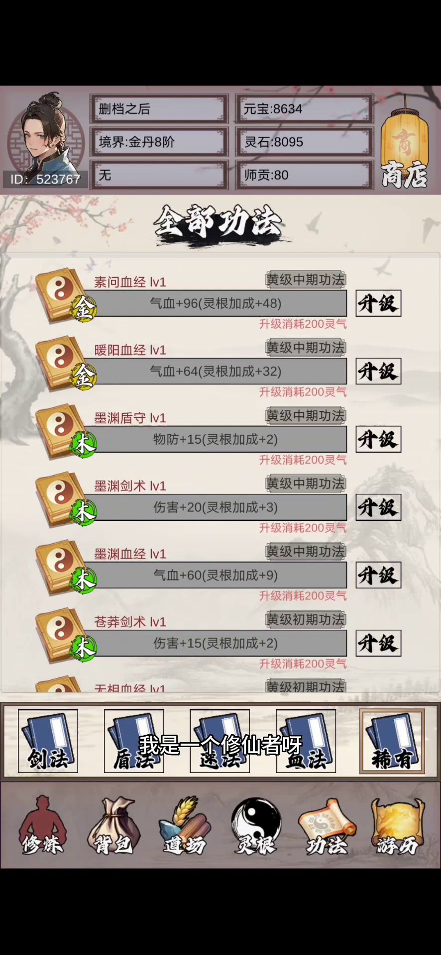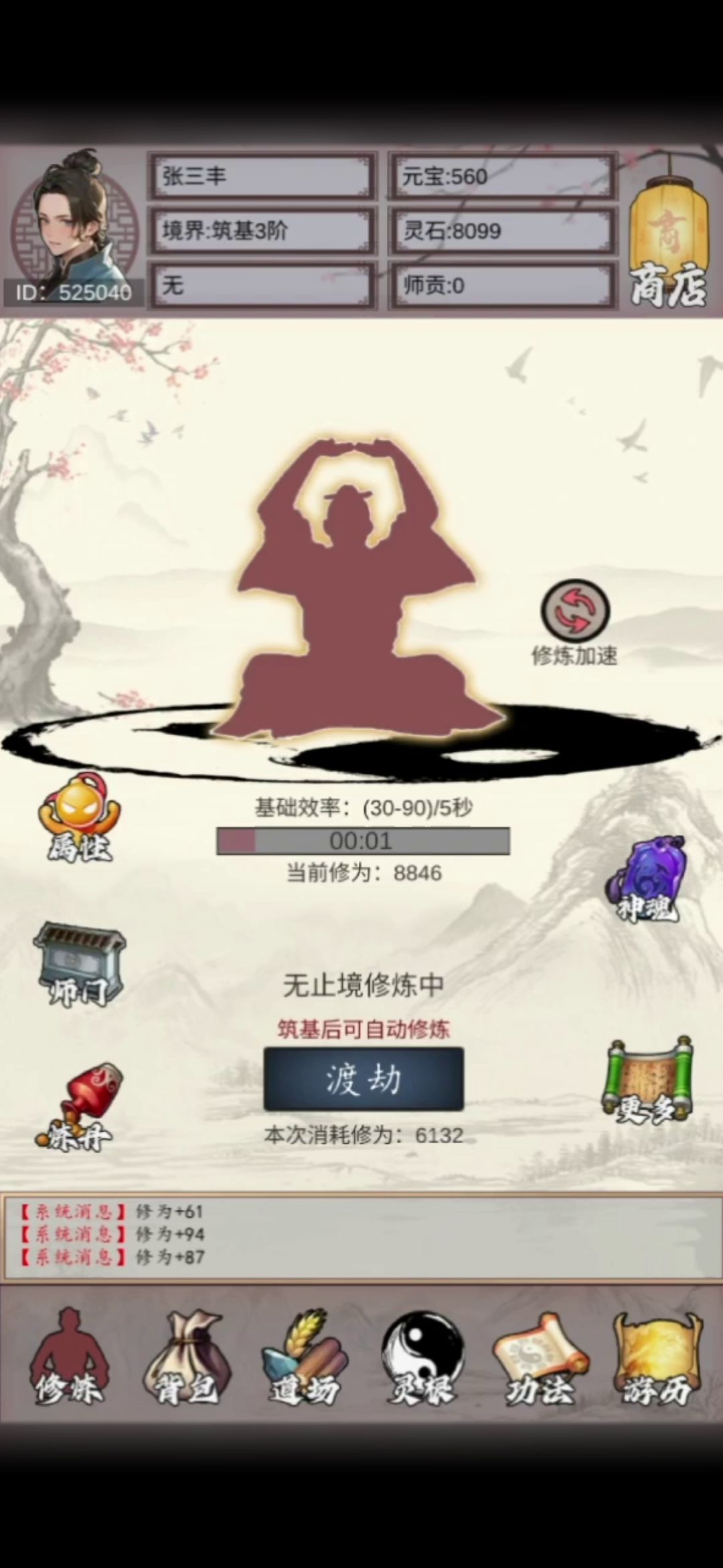 第一步开局首页每三分钟一次修炼 ,筑基后不用点记着渡劫 优先升级木头粮食 登记 1:2 提升内门在修炼加速 三个商店看广告 目前看只能买功法 元宝商店的加修为功法可以买,优先升级修为功法 聚灵阵记得点 然后每天 100 次挑战 自己把握用 炼丹我没出聚气丹 其他丹药可以吃 50 吃 聚气无限