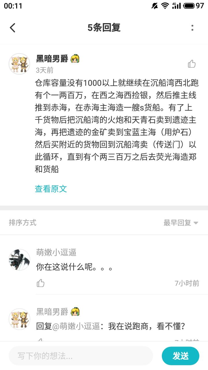 我发现遗迹之海就是个宝藏,需要钱几乎可以在这里全程养老,非常简单,就是不动脑子的跑法,以下介绍。初期大家都知道,遗迹东三个港口逆时针跑,要求:货仓1000+,速度10节+,抬价完了一次赚十几万,一年600万左右,这个简单吧,后面更简单。中期把货仓搞到2800+最好2900,航速12+,然后我们怎么跑呢,就两个进货港口,分别在沉船的主海(奇切尔)的天青石,这个比祖母绿还贵一点,再直接左上↖直