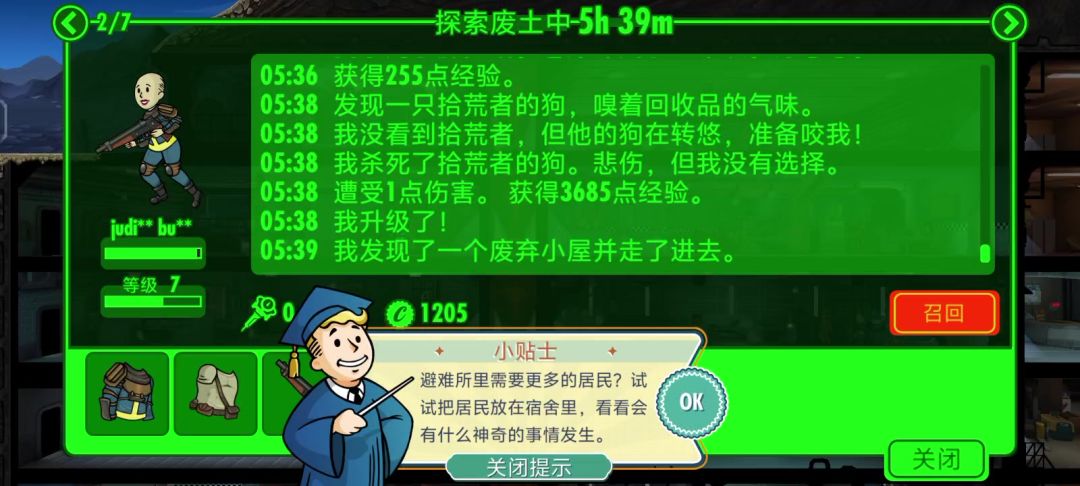 瓶瓶盖盖的任务和一些可跳过任务没做,瓶瓶盖盖会时不时来避难所有概率跳舞,跳舞的时候点击会给瓶盖或核子可乐,但其实没啥大用可有可无,#辐射避难所废土副本 #辐射避难所 #辐射避难所废土问题 #辐射避难所新手解答