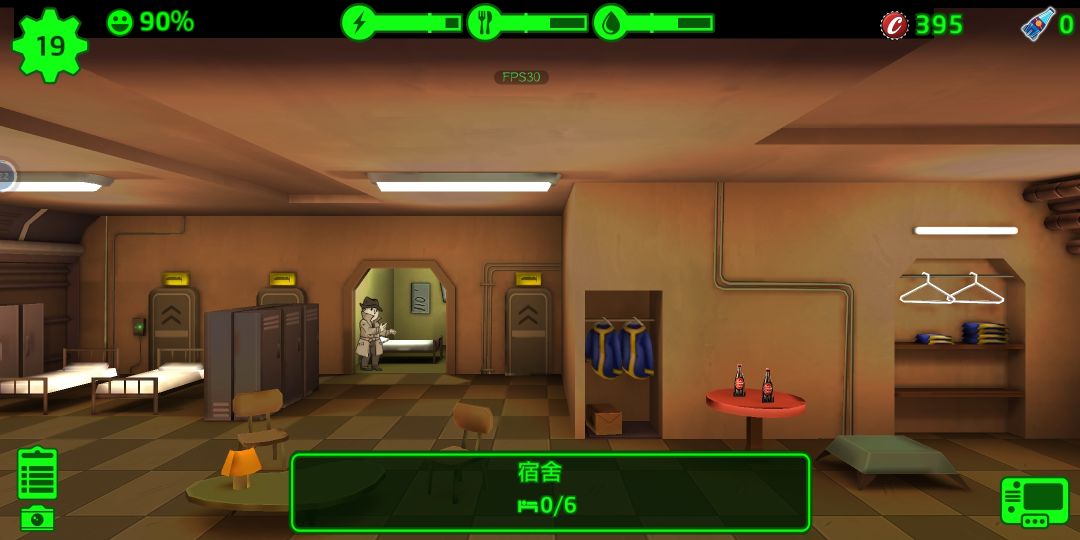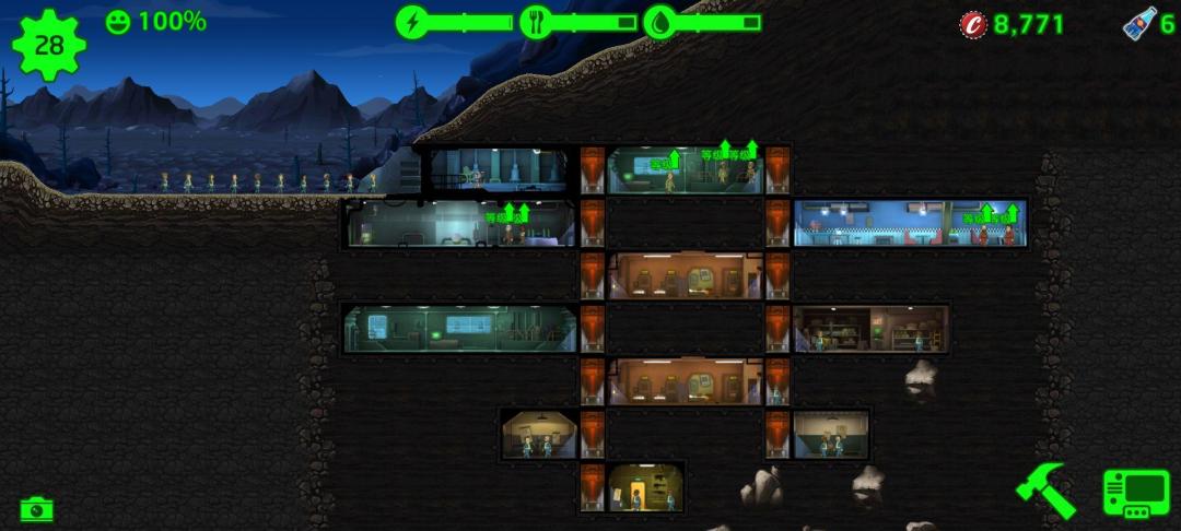 辐射避难所中改版布局,只要在主控室界面找到重构按钮,点击一下就会出现重构布局的界面,这时可以在重构布局的界面内任意修改布局,好的格局布置可以省略非常多的资源和时间。 房屋和人员布局:第一层,大门×2,电梯,核电厂×1,可乐工厂×1,电梯,核电厂×1,可乐工厂×1,核电厂×1。这样布局是由于死爪只在一个房间停留10s,所以最大化输出就是单间割开,这样十二个人可以输出60s,比三合一多出来半分钟,安全