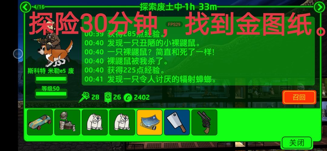 为什么不用时间大法?不是在于会卡bug,让你探险一无所获,而是太无聊了,前几年用了,然后就没有任何挑战性,第一天就不玩了。 但是辐射是有很高的耐玩性的,玩了两周也没感觉有多无趣。 以前玩的时候网上没具体攻略,写得都比较模糊,来这里后发现了不少的细节,然后还有个人摸索出来的一点东西,让新人少走弯路,大佬勿喷。 下面放个图。 下面是攻略和小细节: ①因为幸存者模式灾难太过强,又不能复活居民,前期不好度