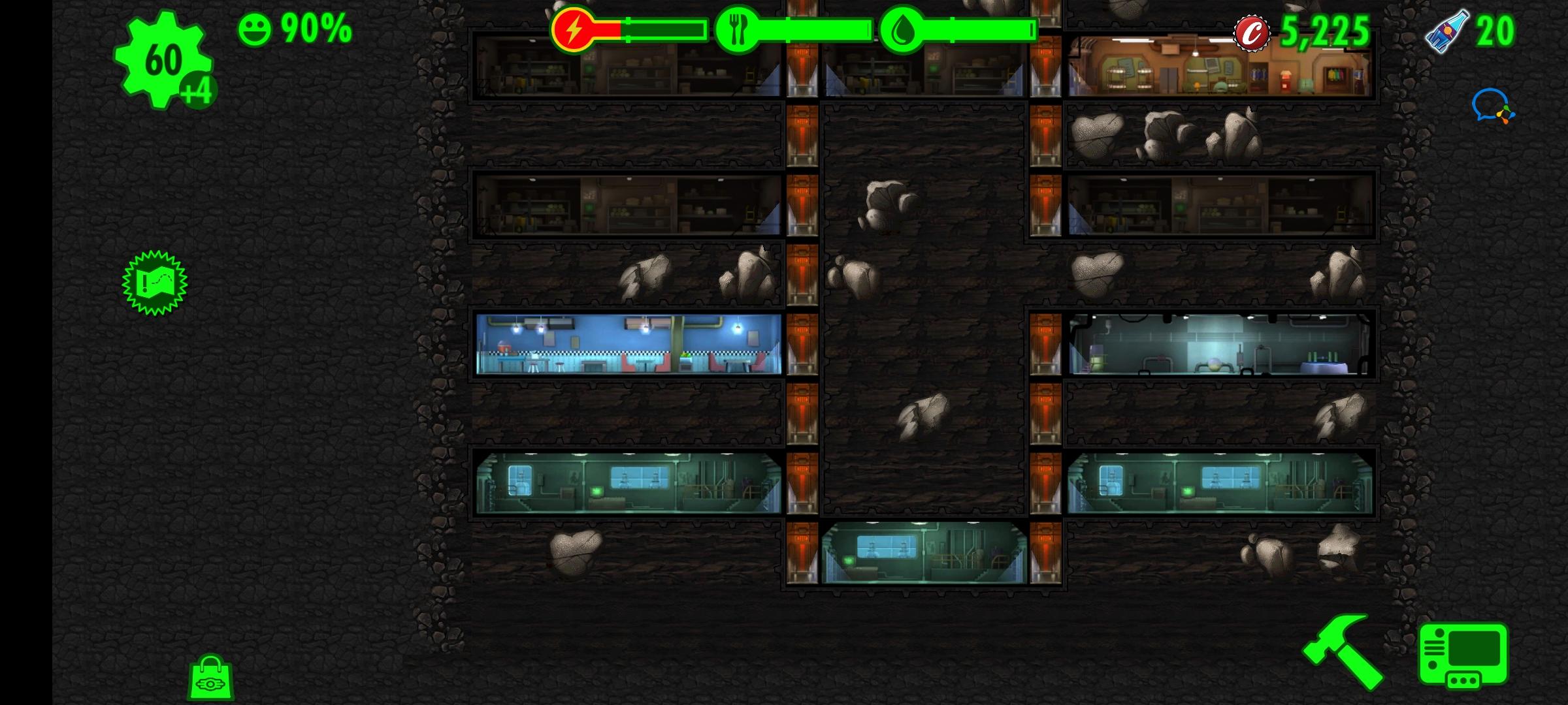 幸存者模式难点就是人一条命,各种突发事件死爪、辐射蝎子、火灾等,只要能抗住快速解决就能安然度过。布局为前四层生产建筑,隔一层中间训练建筑不要相连,两个小人的房间处理突发事件是最快最简单的,死爪、辐射丧尸就在前四层解决。仓库、房间、医院、科学院建立在最底层,各种突发事件不用管自己会消失,上面要隔一层。重要的属性E抗辐射S电量A食物在35人口时就训练高,ES“AL”属性尽可能高拉出去搞资源,药品不够就
