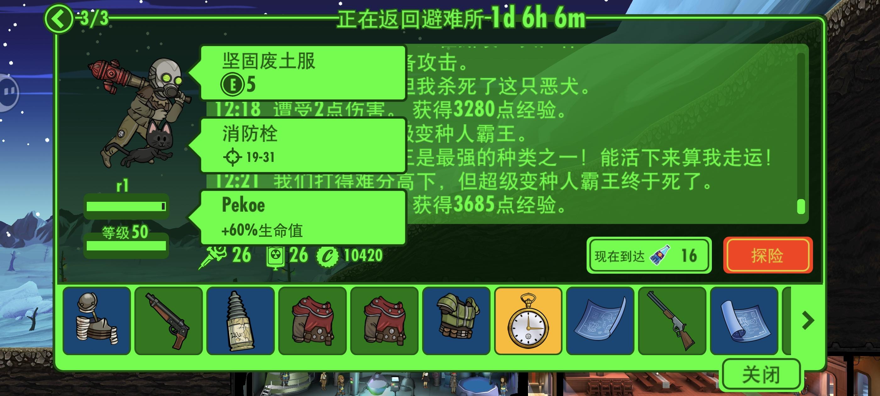 幸存者模式难点就是人一条命,各种突发事件死爪、辐射蝎子、火灾等,只要能抗住快速解决就能安然度过。布局为前四层生产建筑,隔一层中间训练建筑不要相连,两个小人的房间处理突发事件是最快最简单的,死爪、辐射丧尸就在前四层解决。仓库、房间、医院、科学院建立在最底层,各种突发事件不用管自己会消失,上面要隔一层。重要的属性E抗辐射S电量A食物在35人口时就训练高,ES“AL”属性尽可能高拉出去搞资源,药品不够就